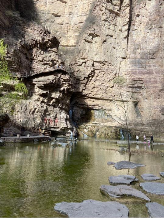 27日早上在公司集合后,大家乘坐大巴車經(jīng)過(guò)三個(gè)小時(shí)的行程,到達(dá)了太行大峽谷景區(qū)。入住酒店及午餐后,首先游覽了有太行魂之稱的王相巖景區(qū)。王相巖景區(qū)唐以來(lái),享有盛名,景區(qū)東臨溪水,西依懸崖,左右兩側(cè)峭壁環(huán)繞,形成了一個(gè)閉合性極強(qiáng)的圍谷,暗合中國(guó)古代風(fēng)水學(xué)“左青龍、右白虎、前朱雀、后玄武”的理想模式,吸引了歷代名人雅士來(lái)此修身隱居。在攀爬過(guò)程中,陡峭、曲徑隨處可見(jiàn)。大家一方面驚嘆大自然的巧奪天工,一方面感受大自然的美。